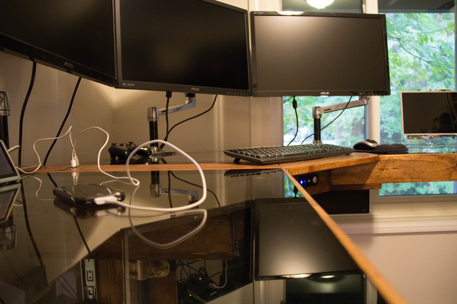 ReplyDeleteSo been looking at custom desks because I was getting tired of the clutter and the way mine looked plus I hate the fact that I can't slide my chair under it due to the arm rests. I wanted to incorporate the glass top of my current setup into the new build and since I don't have the skills to work with metal figured wood was the choice. Then I saw that your starter desk is the same that I have and I was hooked. I am not looking to add the actuator, but I really like the rest of your setup. A bunch of people already asked for your design template and if possible I'd love to grab it as well, just to have something to start with. (mostly for the idea, as I'm not yet 100% determined HOW I want my desk to look like)